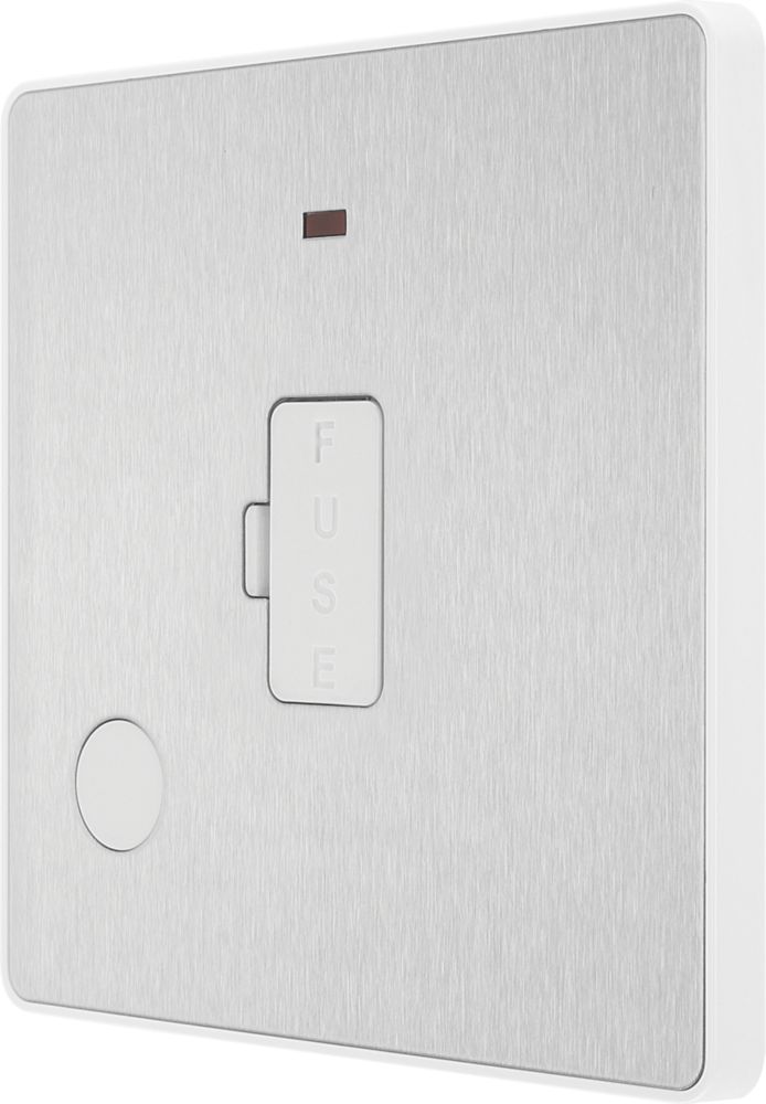 British General Evolve 13A Unswitched Fused Spur with LED Brushed Steel with White Inserts