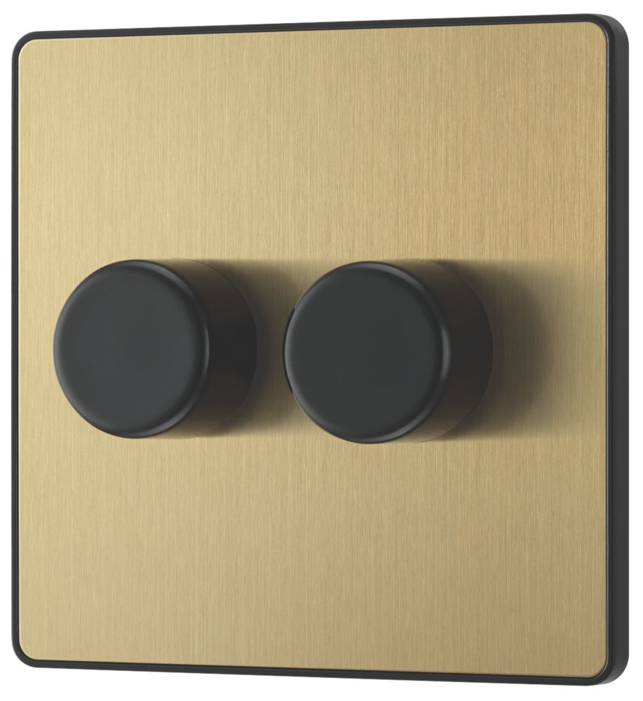 British General Evolve 2-Gang 2-Way LED Dimmer Switch Satin Brass with Black Inserts