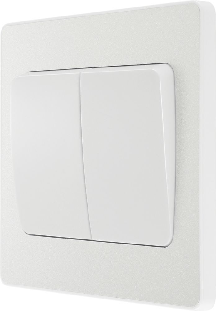 British General Evolve 20A 16AX 2-Gang 2-Way Wide Rocker Light Switch Pearlescent White with White Inserts